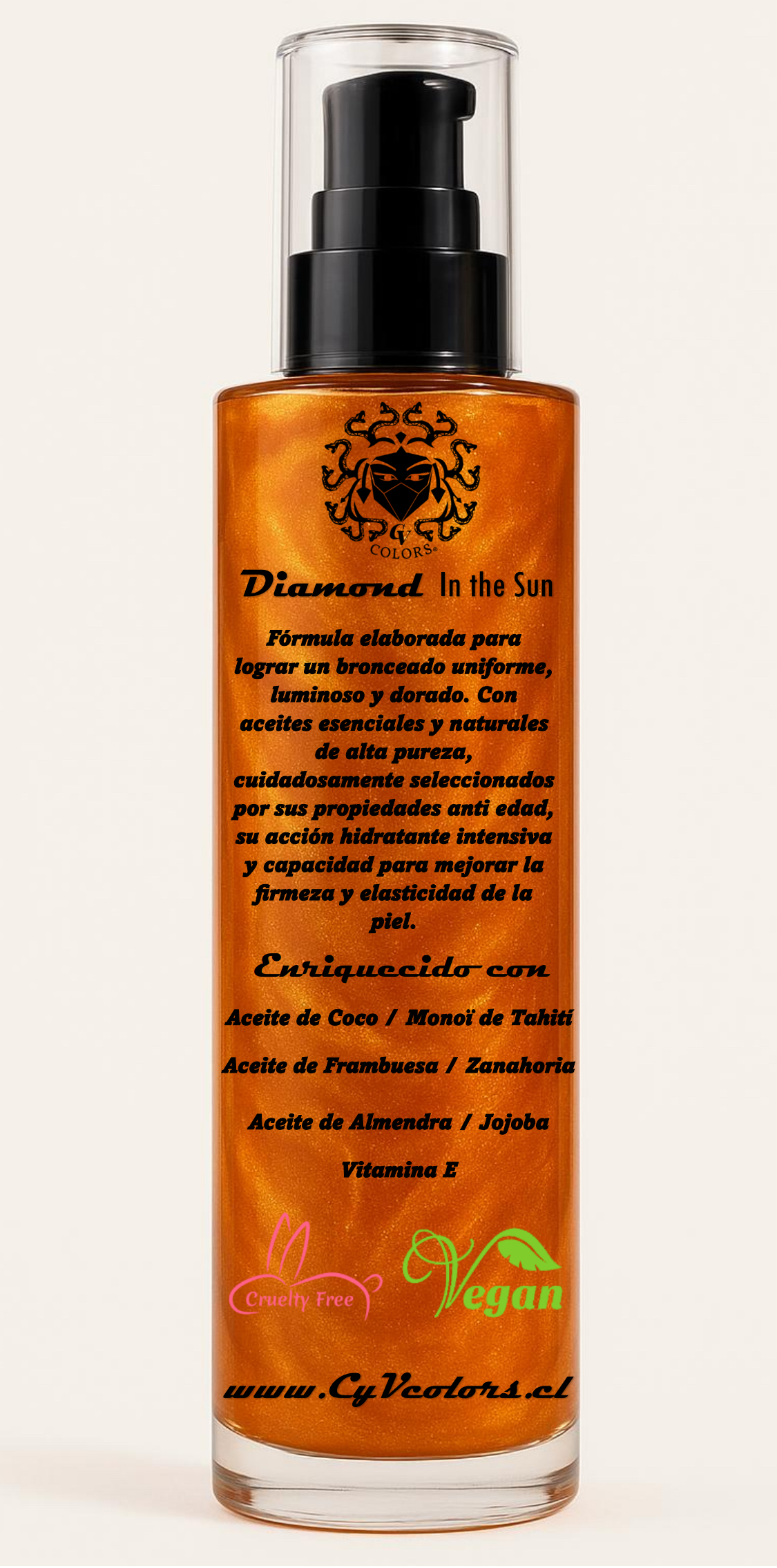 Aceite bronceador con una fórmula exclusiva de alto estándar, combinación excepcional de Aceite de Coco, Almendra, Frambuesa, Zanahoria, Jojoba y Monoï de Tahití. Cada gota está enriquecida con Vitamina E y delicadas partículas de brillo ultrafinas, que aportan un resplandor elegante y una piel rejuvenecida.